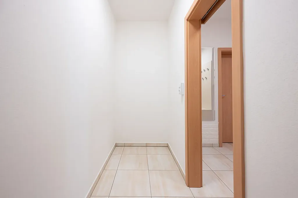 Lokalizace bytu na okraji města zajišťuje klidné bydlení, krásnou přírodu a zároveň v blízkosti městské infrastruktury.