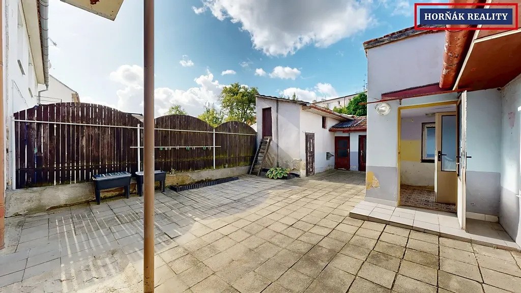 Pokud oceníte nízkoúdržbový venkovní prostor, tento dům vás potěší. Namísto klasické zahrady je k dispozici zpevněný dvůr, který nabízí široké možnosti využití – od grilování až po dílenské aktivity.