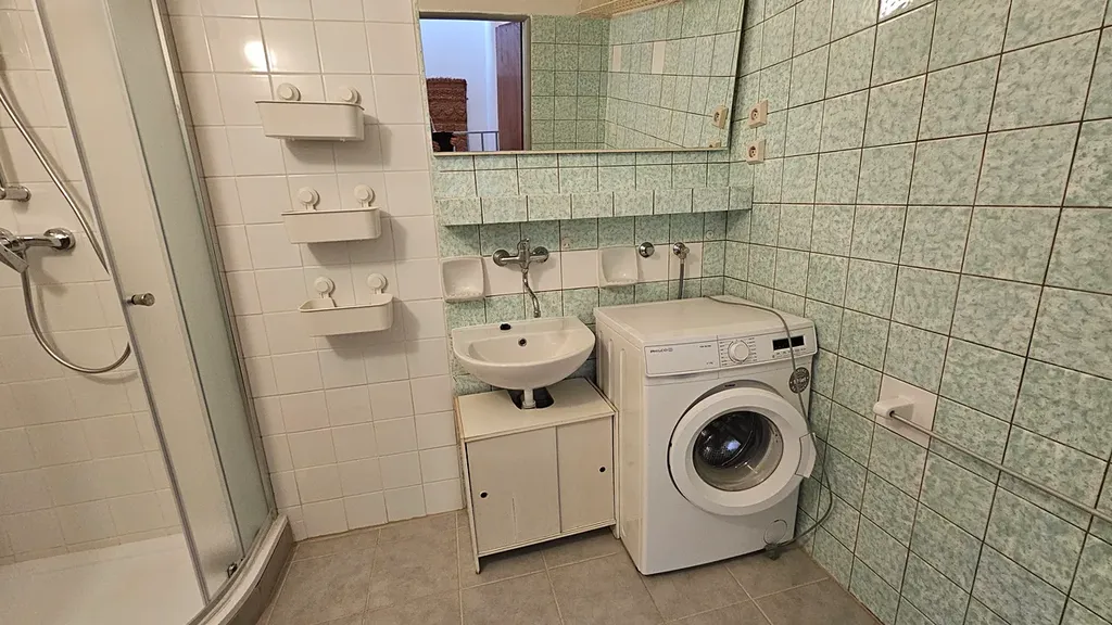 Na patře je k dispozici jídelna s kuchyňským koutem, koupelna se sprchovým koutem a pračkou, WC a další dva pronajímané pokoje (jeden již obsazen). K užívání celkem max. pro 3 osoby /slečny/.