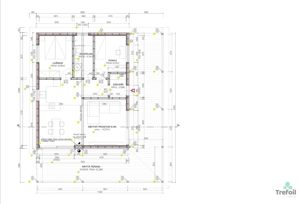 Zastavěná plocha činí 142 m² (včetně terasy).