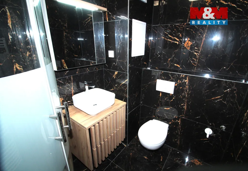 V kuchyni je nová kuchyňská linka se sporákem a digestoří. Koupelna je společná s toaletou. Je vybavena umyvadlem s umyvadlovou skříňkou, sprchovým koutem, elektrickým žebříkem a dostatečným prostorem pro umístění pračky.