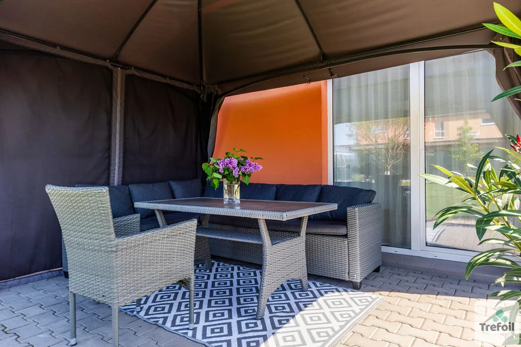 Zahrada pro relaxaci i zábavu o rozloze 256 m² je pečlivě upravená a nabízí ideální prostor pro odpočinek i rodinné aktivity. Jsou zde zasazené ovocné stromy a je tu i místo pro zeleninový záhon. Na terase si můžete vychutnat ranní kávu či večerní sklenku vína, zatímco děti si budou hrát na trávníku. Nářadí a zahradní potřeby lze pohodlně uložit v zahradním domku.