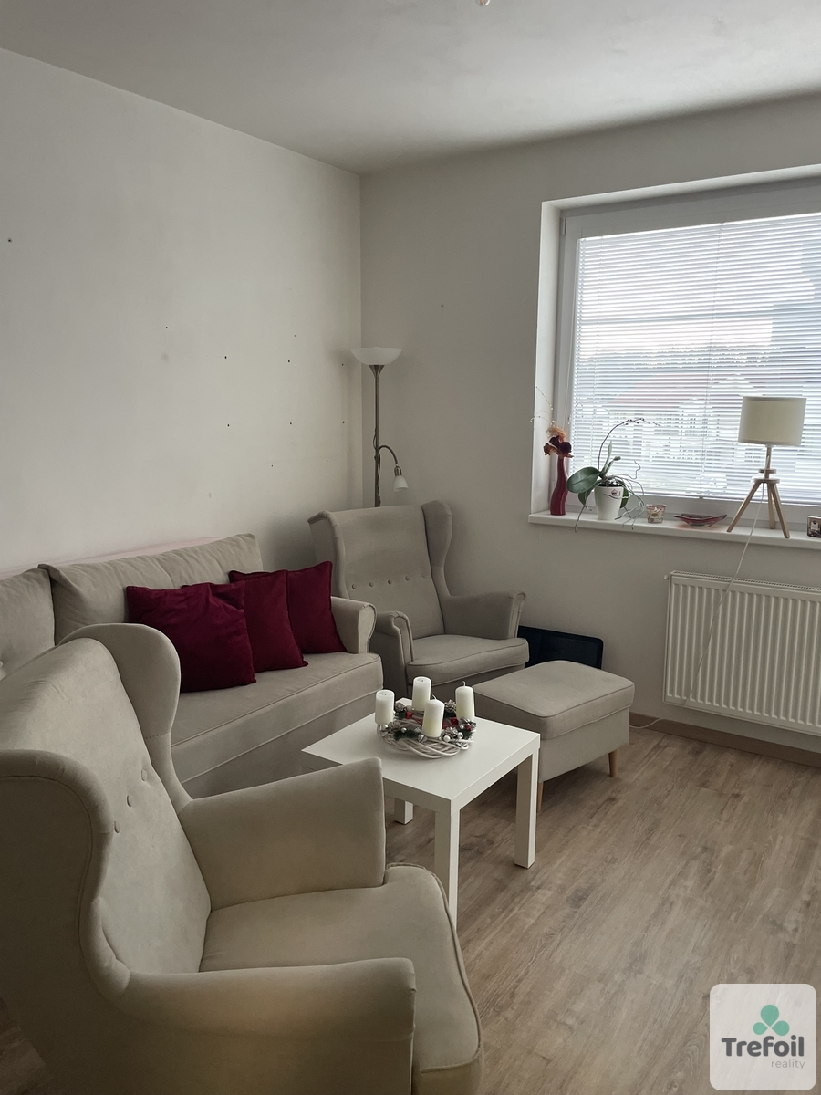 světlý obývací pokoj plně vybavený, s přímým vstupem na lodžii