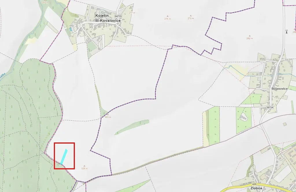 V kú Kovalovice u Kojetína na LV č. 367 se jedná o tento pozemek:
