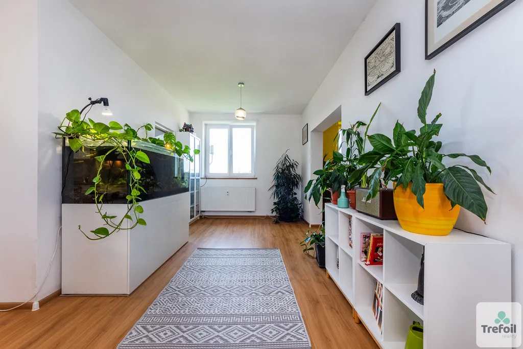 Byt disponuje prostorným obývacím pokojem s kuchyňským koutem, dvěma samostatnými ložnicemi, koupelnou se sprchovým koutem a samostatným WC. Kuchyň i koupelna prošly rekonstrukcí v roce 2018, kvalitní vinylová podlaha s korkovou vrstvou zajišťuje komfort a ticho.