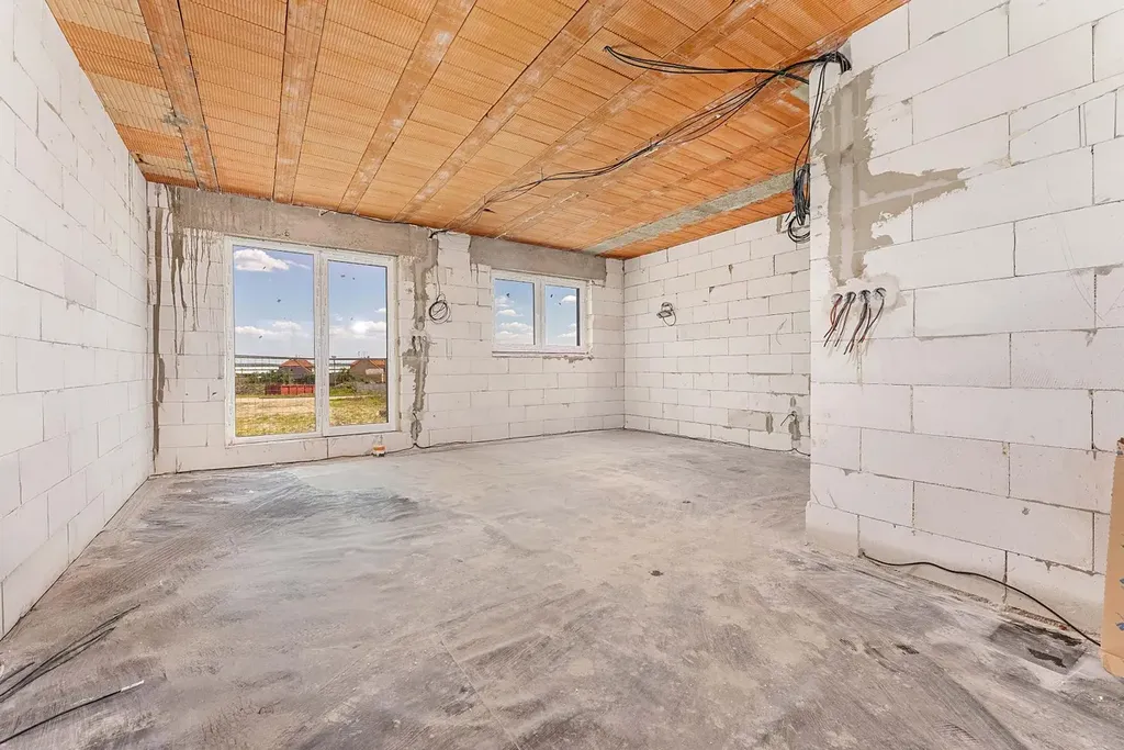 Dům má hotovou fasádu a osazená okna. Interiér je připraven k dokončení. Novému majiteli se tak otevírá možnost zvolit si interiér dle vlastního vkusu.