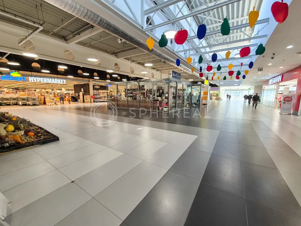 V obchodní části se nachází hypermarket, drogerie, lékárna, restaurace, kavárna, vinotéka, květinářství, kadeřnictví a další služby a obchody. Pod budovou je možné parkování pro zákazníky, v případě potřeby je možné pronajmout stálé parkovací místo za 2000 Kč/místo/měsíc.