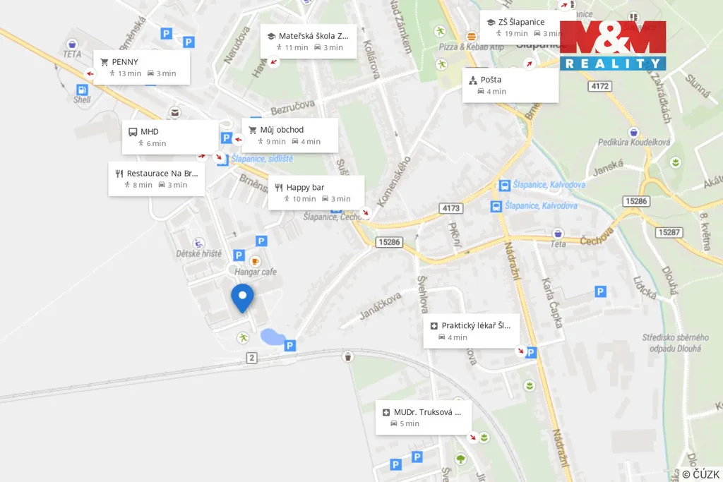 Byt se nachází v obci Šlapanice, v bezprostřední blízkosti Brna, s výbornou dostupností – MHD města Brna jezdí přímo do obce. Lokalita nabízí klid menší obce při zachování kompletní občanské vybavenosti.