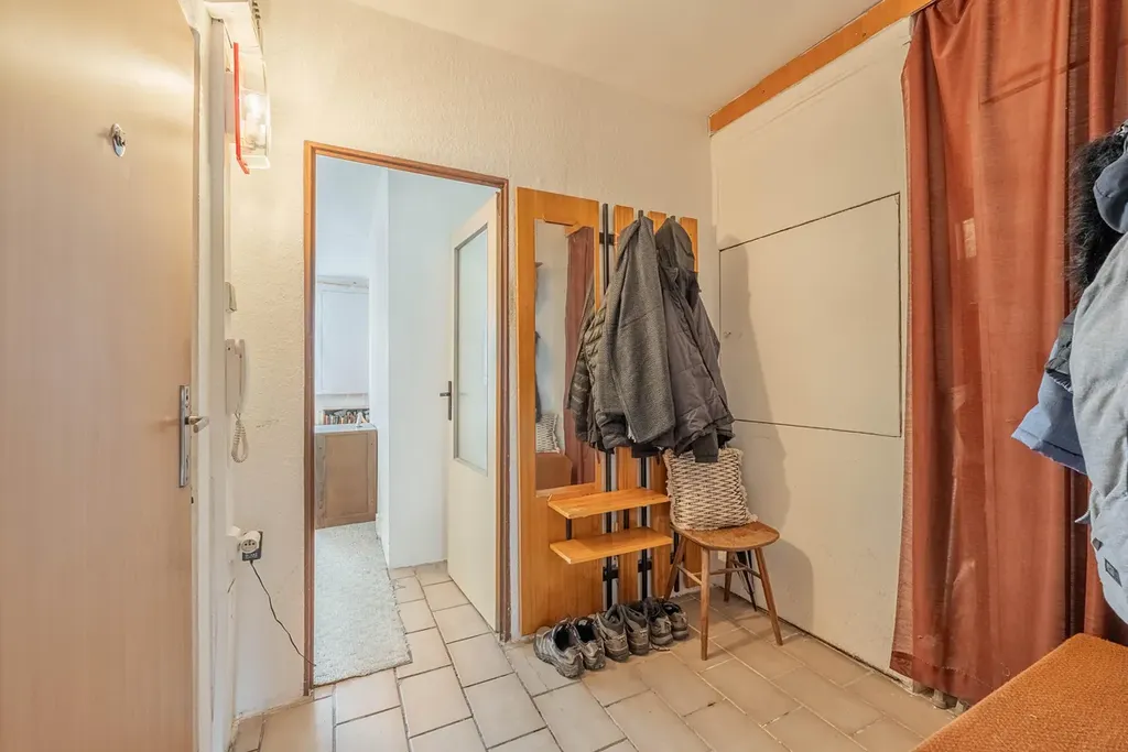 Jednotka je situována do 5. patra s výtahem. Okna mají orientaci na severozápad a jihovýchod do vzrostlé zeleně. Byt je v původním udržovaném stavu - jádro umakartové. Koupelna a záchod jsou zvlášť. Obývací pokoj je prostorný a má 20 m2, na něj navazuje původní kuchyň o 11m2. Chodba s předsíní je prostorná a ukrývá i vestavěné police a šikovnou šatnu. Byt má solidní a praktickou dispozici s dobře využitými prostory.