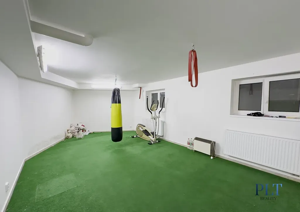 • 1.PP (99,5 m²): vinárna s krbem, posilovna, sklad, technická místnost, WC.