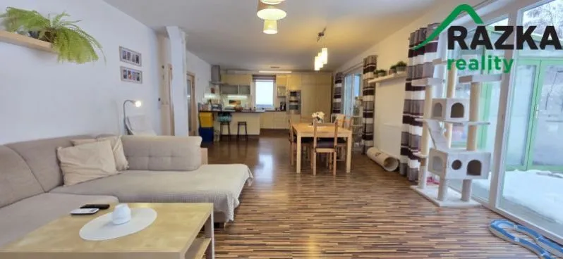 Dům má tři podlaží. V suterénu se nachází vstupní hala, technické zázemí s prádelnou, garáž, dílna, sklad a samostatný prostor pro topný systém, který je navržen pro maximální efektivitu. V prvním patře je prostorný obývací pokoj s kuchyní a zimní zahradou o půdorysu 6 × 4 m orientovanou na jih, kterou je možné vytápět i krbovými kamny. Z obývacího pokoje je přímý vstup na venkovní terasu orientovanou na jižní stranu, která poskytuje krásný výhled do mírně svažitého zatravněného pozemku. K dispozici je také ložnice a koupelna. Podlahy v obytných místnostech jsou z OSB desek, v obývacím pokoji a kuchyni je na nich položena plovoucí podlaha. Obývací pokoj i ložnice jsou klimatizovány (instalace 2025). Ve druhém patře se nachází tři pokoje a koupelna.