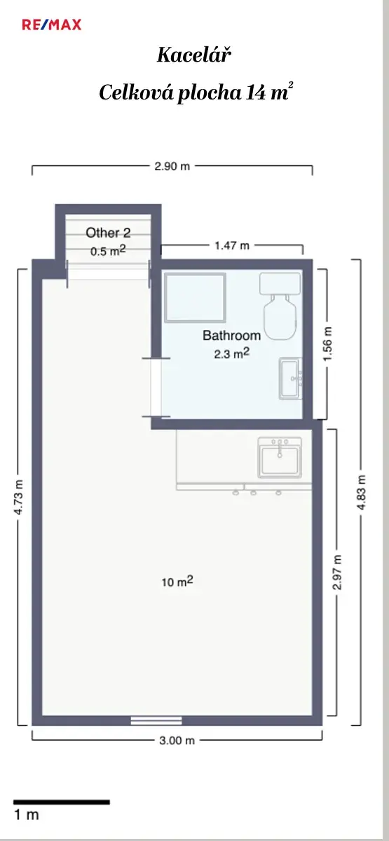 Součástí prostoru je kuchyňská linka, koupelna vybavená WC a sprchovým koutem, což poskytuje plnohodnotné zázemí pro každodenní provoz.