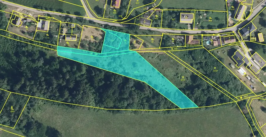 Pozemky jsou svažité, nabízí otevřený výhled na obec a do okolní krajiny.