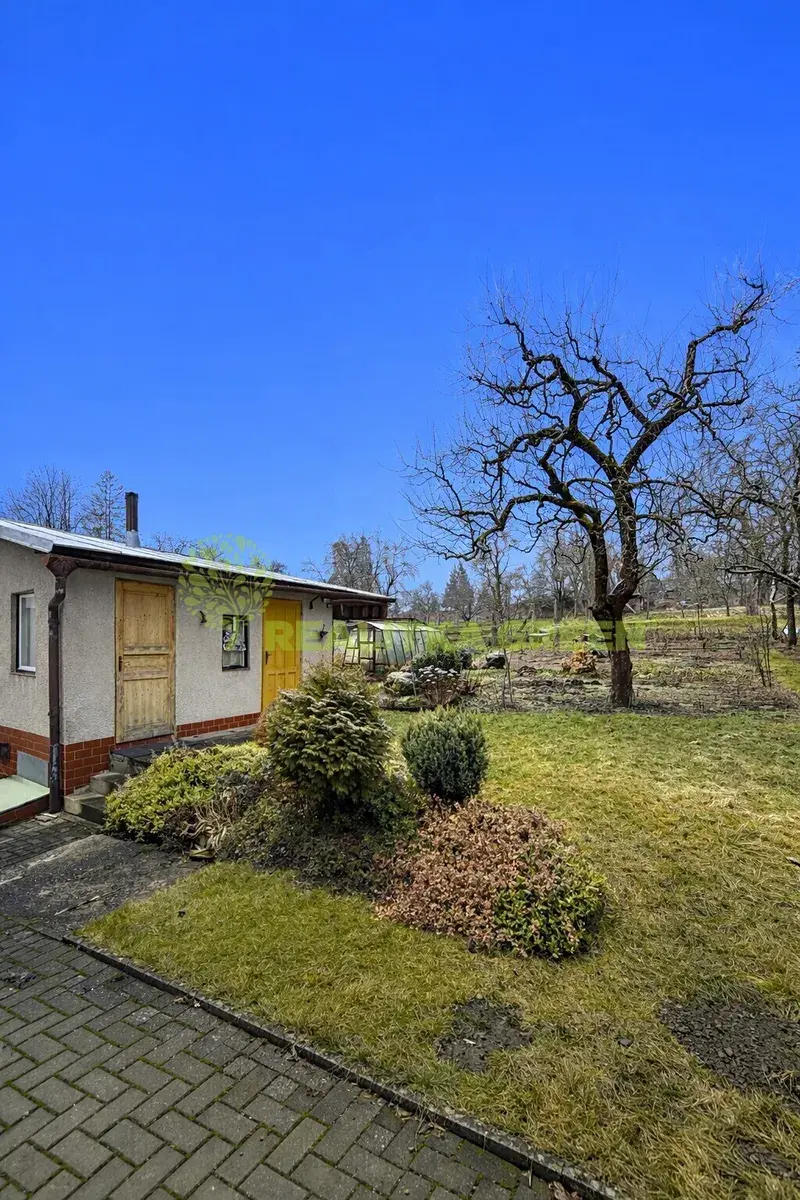 Na zahradě se nachází zděný zahradní domek, který je rovněž podsklepený – v suterénu je vinný sklípek. V přízemí domku je místnost s krbem určená k posezení a druhá místnost slouží jako sklad zahradního nářadí. Součástí zahrady je také skleník.
