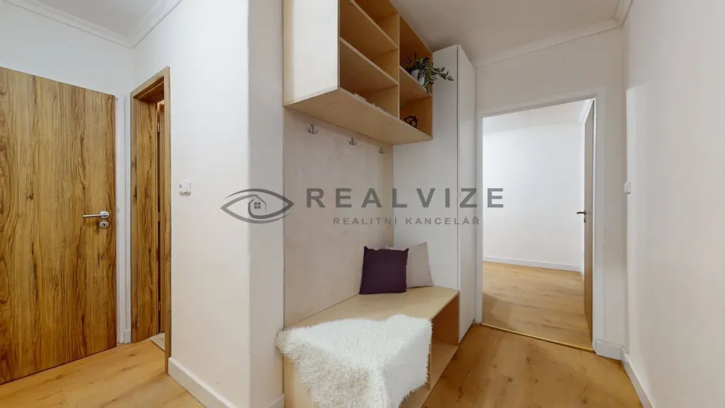 Byt je rohový a díky orientaci na východ, západ a jih nabízí dostatek denního světla po celý den. Dispozičně se skládá z obývacího pokoje, na který navazuje samostatná průchozí kuchyň, dále z jednoho neprůchozího pokoje, haly, praktické spíže a koupelny se sprchovým koutem a toaletou.