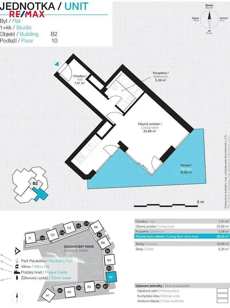Rádi Vám představíme exkluzivní nabídku: prodej moderního bytu 1+kk s plochou 38,45 m², venkovní terasou 19 m², sklepem 6,3 m² a parkovacím místem v prestižní rezidenci Central Park Praha v Žižkově.