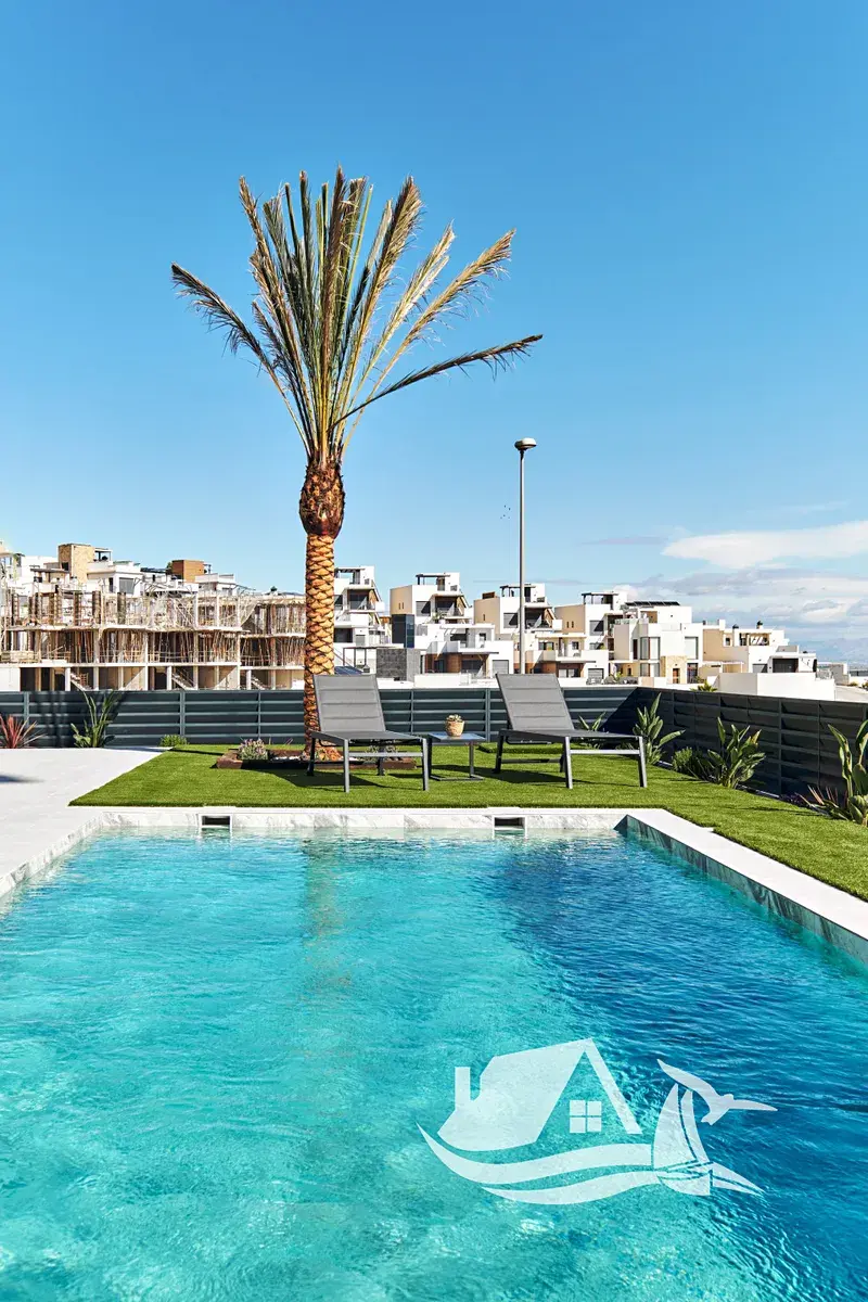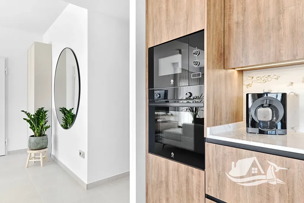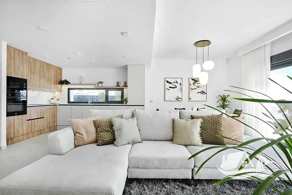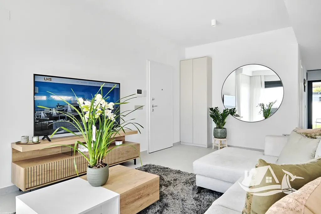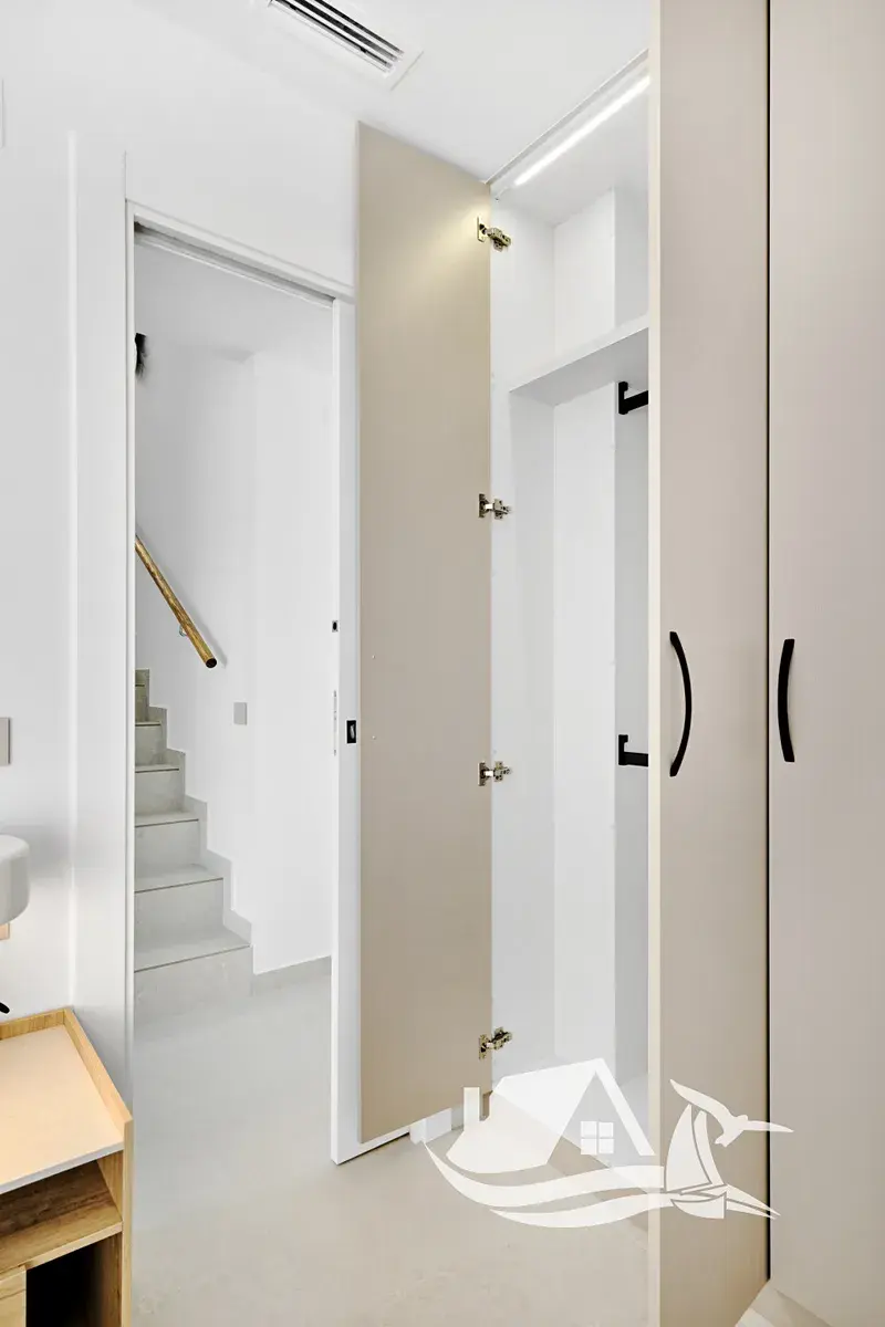Interiéry jsou promyšlené tak, aby sloužily rodinám i párům, nabízejí tři ložnice a dvě koupelny, keramické podlahy pro snadnou údržbu a příjemný vzhled, plně vybavenou kuchyni a nábytek připravený k nastěhování, takže si nové bydlení můžete užít hned. Komfort zvyšují klimatizace a před instalace pro další chladicí jednotky, elektrické rolety a vestavěné skříně, vše v moderním a praktickém provedení.