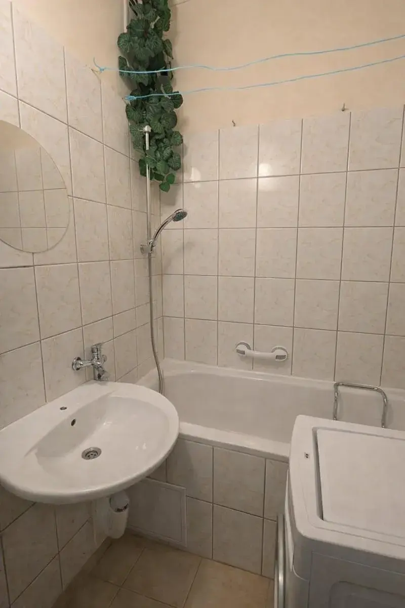 Kuchyň je vybavena hezkou kuchyňskou linkou a elektrickým sporákem s digestoří. V koupelně je vana s umyvadlem, WC odděleno..
