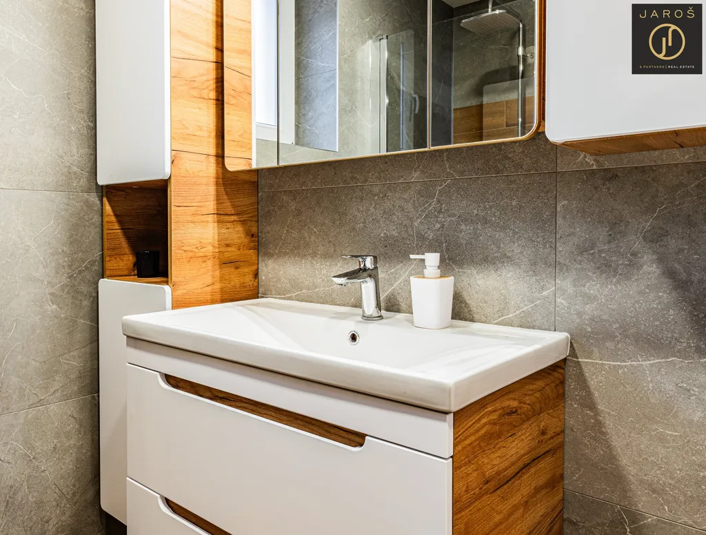 Samotný byt je rovněž po kompletní rekonstrukci – nové rozvody, moderní koupelna, plastová okna. Energetická náročnost budovy je PENB třídy C. Měsíční poplatky činí cca 5.500 Kč (z toho fond oprav 1.000 Kč) + spotřeba elektřiny, a to pro čtyřčlennou domácnost (2+2). Nastěhování je možné ihned, vyjma elektrospotřebičů /lednice, pračka, TV/ a sedací soupravy může v bytě zůstat vybavení.
