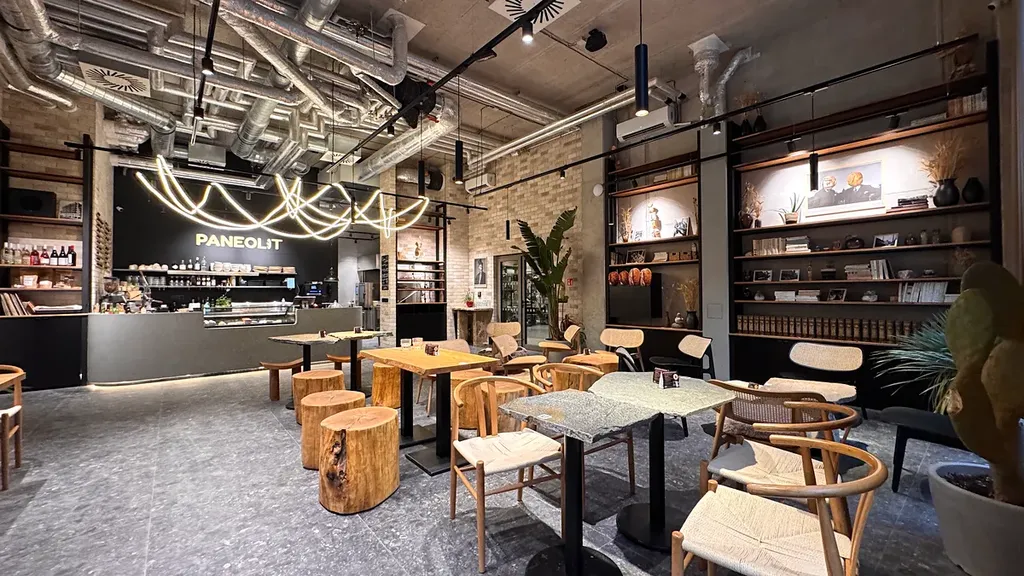 V přízemí domu se nachází vyhlášená pekárna a kavárna Paneolit – ideální na snídani, kávu nebo pracovní schůzku bez nutnosti kamkoliv jezdit.