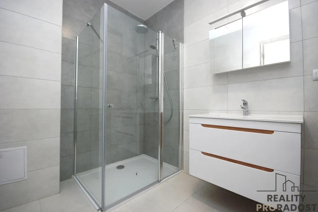 Dispozice bytu je následující: prostorná vstupní chodba, koupelna se sprchovým koutem, umyvadlem a místem na pračku a sušičku, samostatné WC, technická místnost vybavená policovým regálem, kuchyně se spížkou a kompletně vybavenou kuchyňskou linkou, 1 x ložnice se vstupem na terasu. Pokoje v bytě jsou neprůchozí. K dispozici je šatní skříň umístěná ve vstupní chodbě bytu.