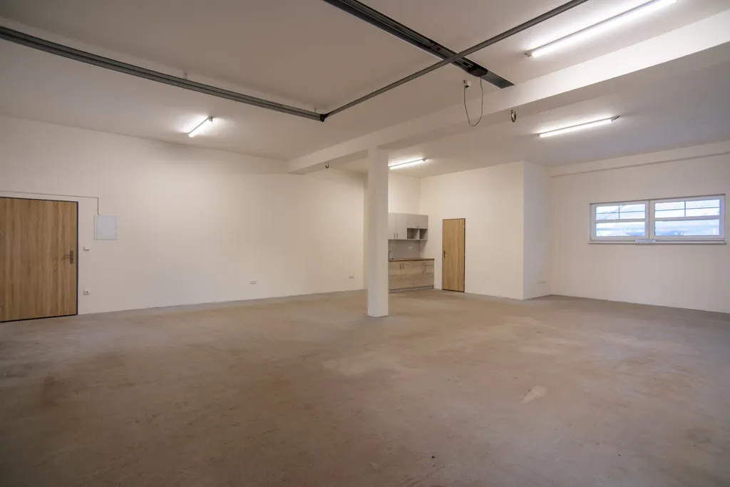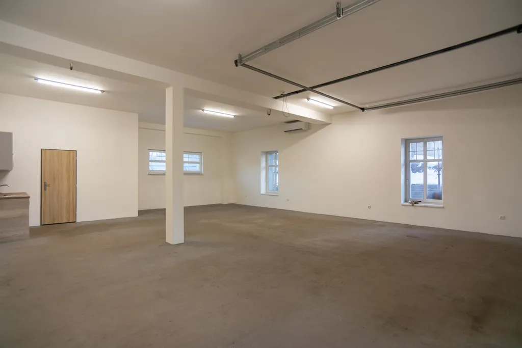 Prostor je vhodný zejména pro skladování, garážování, dílnu nebo drobný provoz. Rozměry 8,6 x 9,26 plus koupelna s WC.