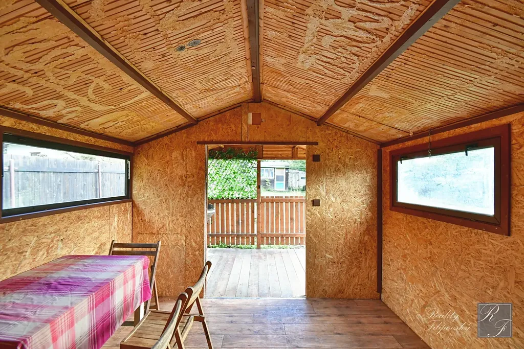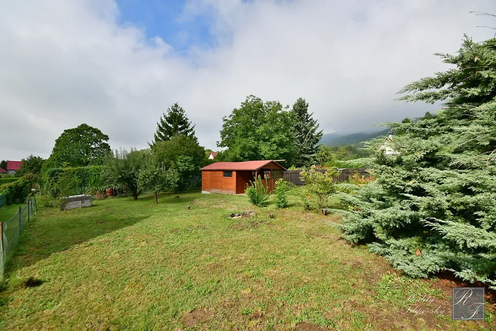 Na zahradě je stavba bez č. p. i č. ev, zapsaná v katastru nemovitostí, se zastavěnou plochou 11 m2. Ta je využívána jako sklad zahradního náčiní. Dále se zde nachází dočasná stavba sloužící jako odpočinkové zázemí k zahradě s podlahovou plochu hlavní místnosti 13,6 m2 a verandou o výměře 6 m2. Tento objekt je v celkově velmi dobrém stavu a je opatřen i základním zateplením obvodového pláště.