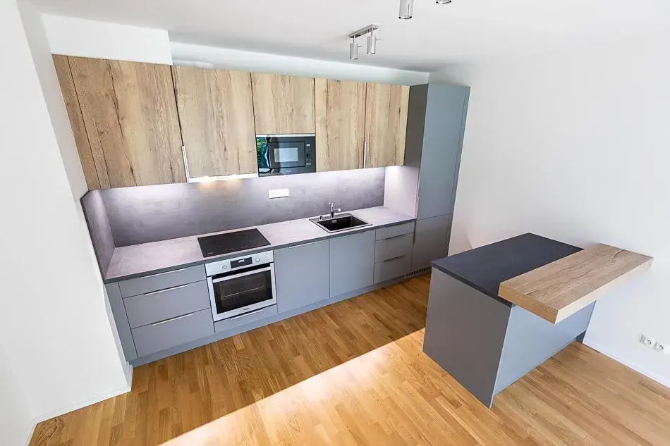 The apartment is suitable for own living, but also as an investment for rent. It is furnished with a kitchen unit including appliances (fridge, oven, induction hob, microwave oven, dishwasher), a built-in wardrobe in the hallway, bathroom furniture, including lighting and curtain brackets. It is possible to purchase a garage space in the building with the apartment.