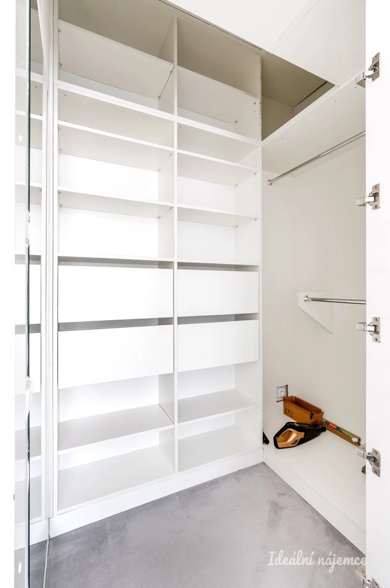 Dětský pokoj nabízí zvýšenou postel s úložnými prostory a dětským stolkem k učení, dále komody a vestavěnou šatní skříň. V prakticky udělané koupelně najdeme sprchový kout, pračku se sušičkou, umyvadlo a komody. Toaleta se nachází samostatně.