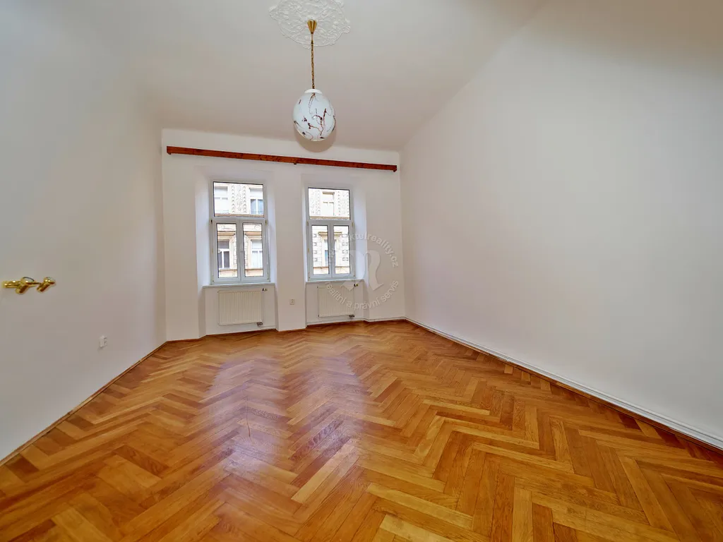 Na obývací pokoj navazuje ložnice (22,8 m²). Ta má dvě dvoukřídlá plastová okna, směrována jsou na místní klidnou ulici Klicperova, severní orientace. Pod okny nové otopné panely, typ Korado. Na zemi jsou položeny zrestaurované dřevěné lakované parkety.
