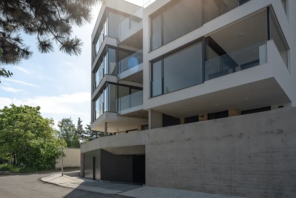 Novostavba se nachází v krásné klidné vilové čtvrti v Praze 4 - Zelený pruh, v dochozí vzdálenosti od lesoparku Dobeška. V domě se nachází pouhých 6 bytových jednotek.