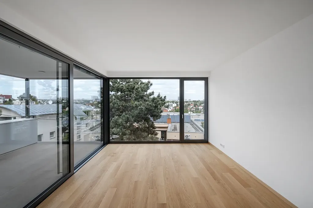 Celý projekt je unikátní, jak použitými materiály v nejvyšším standardu, tak technickým vybavením. Provedení bytu zahrnuje např. celoplošně lepenou dřevěnou podlahu v obytných místnostech, teplovodní podlahové vytápění pro zimní období a studenovodní stropní chlazení pro letní období. Hladké bezfalcové interiérové dveře na celou výšku místnosti nebo koupelnu s velkoformátovými keramickými obklady 3 x 1,5m. Byt je dále vybaven hliníkovými okny s tepelně-izolačním trojsklem a hliníkovými předokenními žaluziemi. Standardem je také inteligentní elektroinstalace LOXONE.