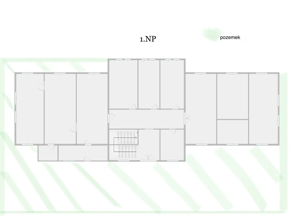 Celková rozloha pozemku 1 058 m2. Zastavěná plocha 430 m2. Dům nabízí 1 podzemní podlaží (1/3 domu podsklepena), 3 nadzemní podlaží včetně půdy.