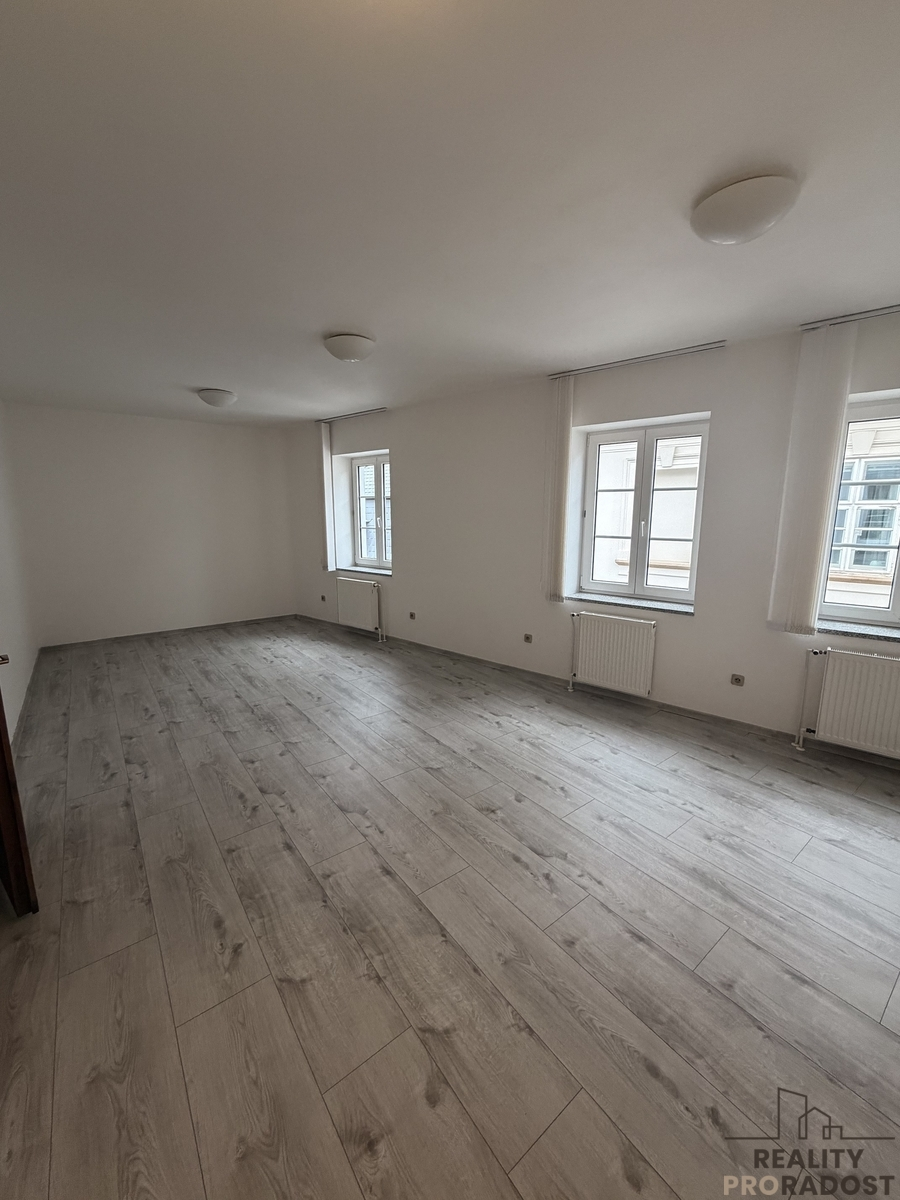 Nabízíme k pronájmu světlý a prostorný byt 3+kk o celkové ploše 85,6 m2, nacházející se ve 3. nadzemním podlaží historického domu bez výtahu, v samotném centru Olomouce - v bezprostřední blízkosti kostela sv.Michala a městského parku.