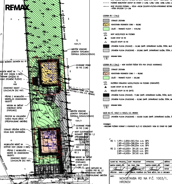 Pozemek se nachází na mírném jižním svahu, díky čemuž nabízí dostatek slunce po celý den a krásné výhledy do okolní zeleně. Velkou výhodou je připravený projekt na výstavbu dvou rodinných domů o dispozici 4+kk s kompletním příslušenstvím.