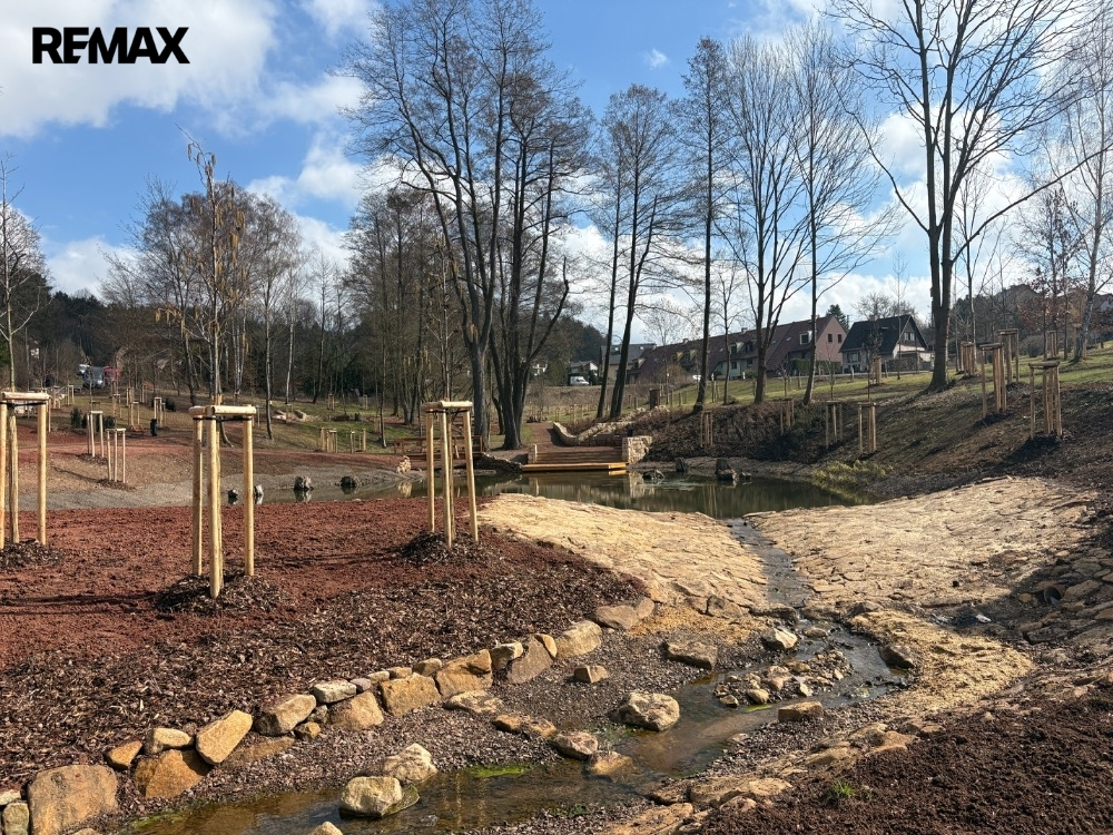 Velkou přidanou hodnotou je i skutečnost, že Město Hronov aktuálně dokončuje realizaci nového moderního parčíku s přírodním koupacím jezírkem, který vzniká přímo naproti pozemku přes cestu.