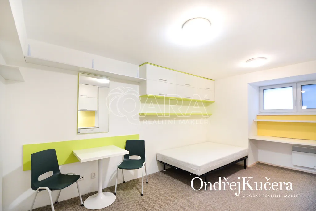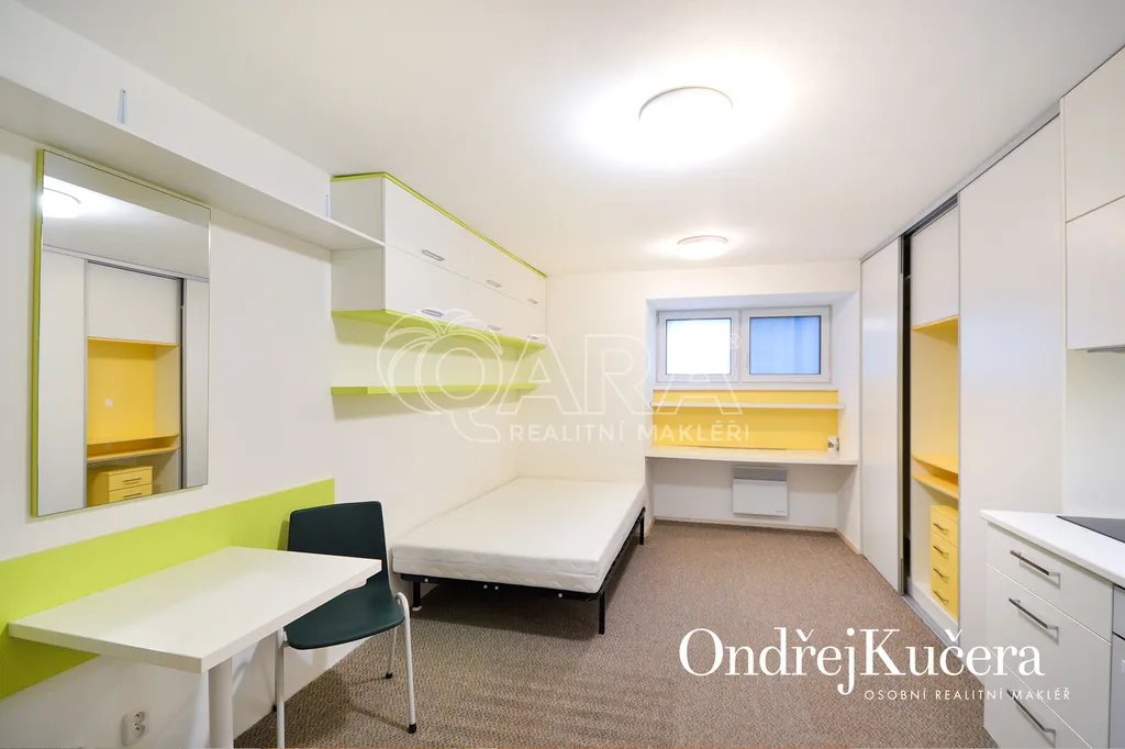 Tento prakticky řešený byt 1+kk s celkovou výměrou 29 m2 je vhodný pro jednotlivce, případně pár. Nachází se ve sníženém přízemí cihlového domu. V roce 2023 prošel rekonstrukcí a je plně vybavený. Má pokoj s kuchyňskou linkou, vstupní předsíň, koupelnu s vanou a samostatnou toaletu. Je vybavený vestavěnou skříní, pracovním stolem, postelí 130 cm širokou, jídelním stolem se židlemi, sklokeramickou varnou deskou, elektrickou troubou, lednicí s mrazákem, pračkou a bojlerem na ohřev vody v koupelně. Vedle bytu je také možnost využití společného uzamykatelného prostoru na kola.