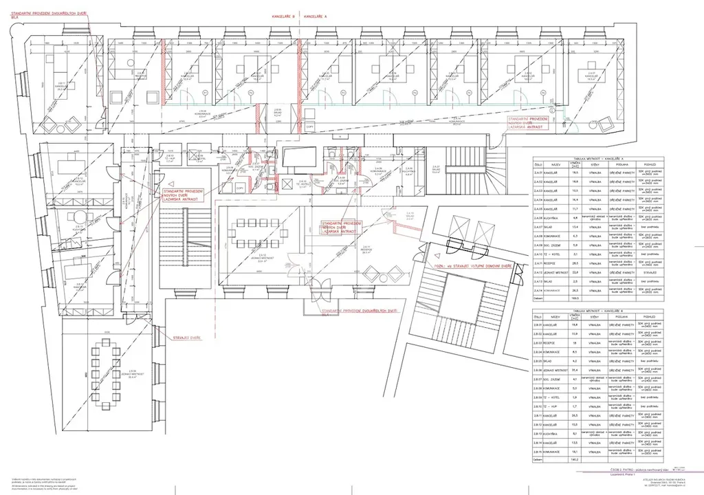 • čelní příčky do kanceláří budou skleněné