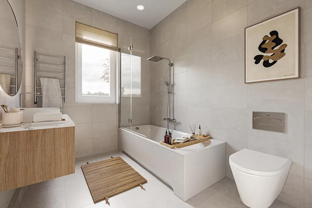 Na domě aktuálně probíhají dokončovací práce, konkrétně pokládka podlah a dlažby. Stále máte možnost vybrat si sanitu podle vlastních představ.