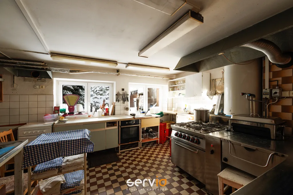 V penzionu najdete plně vybavenou kuchyni, jídelnu s krbovými kamny, dětským koutkem a TV. Pro klidné posezení je zde také klubovna. Vaši hosté jistě ocení lyžárnu-kolárnu, kde můžou uložit své vybavení. Možnost parkování až pro 15 aut na pozemku. Penzion je napojen na veškerou infrastrukturu, včetně vody z vlastního vrtu, kanalizace a elektřiny.