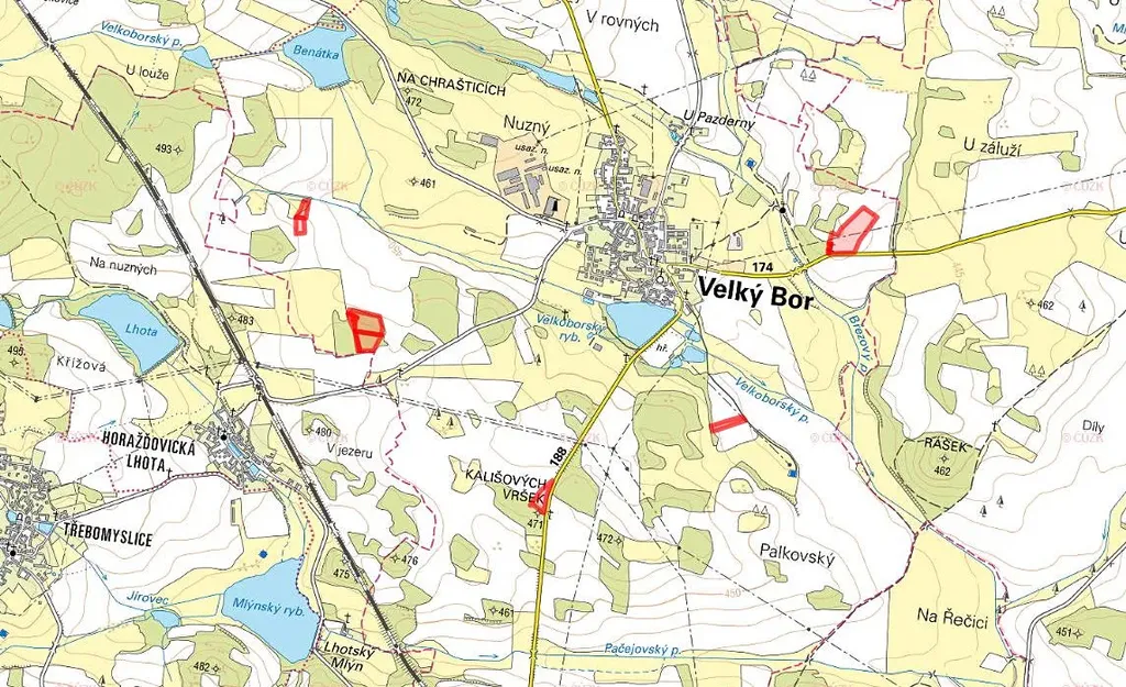 Nabízíme k prodeji soubor 11 pozemků ve výlučném vlastnictví, zapsaných na listu vlastnictví č. 273 pro katastrální území Velký Bor u Horažďovic, obec Velký Bor, okres Klatovy.