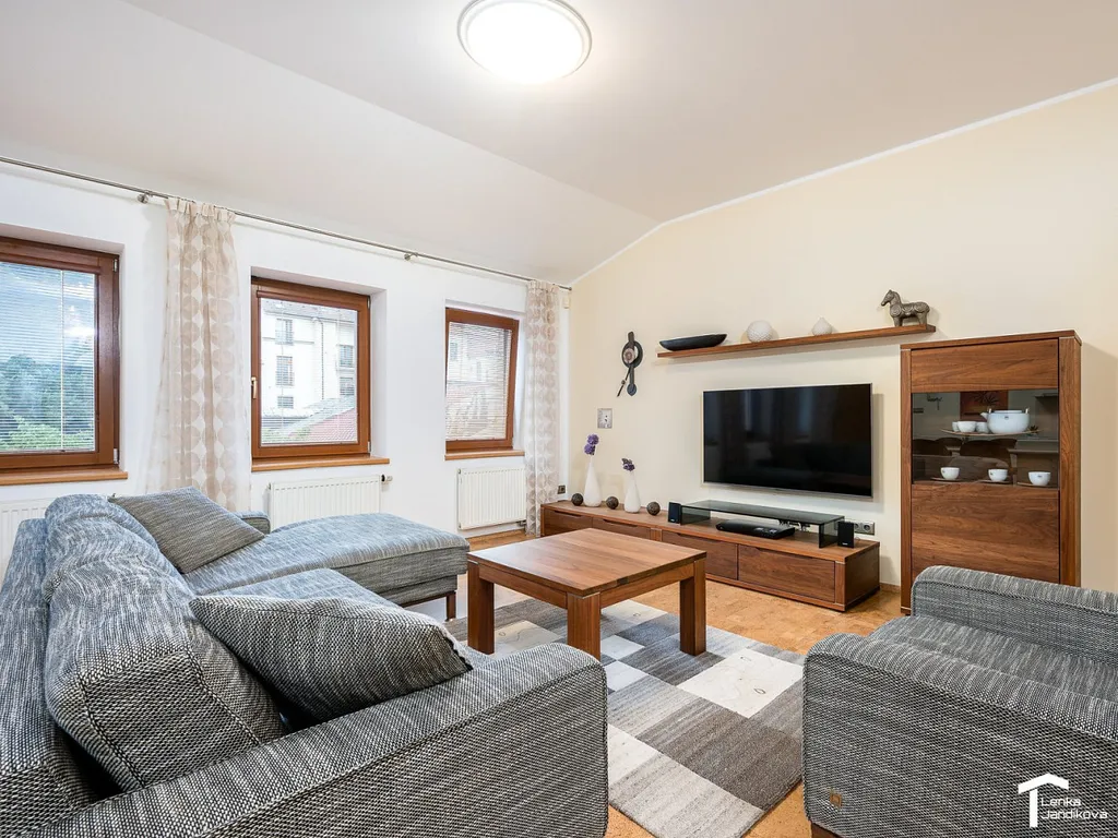 Nabízíme vám k pronájmu plně zařízenou bytovou jednotku v centru města. Byt o celkové výměře 92m² se nachází ve vnitrobloku rodinného domu a je kompletně vybavený a v rámci komfortnější bydlení je v bytě instalována klimatizační jednotka.