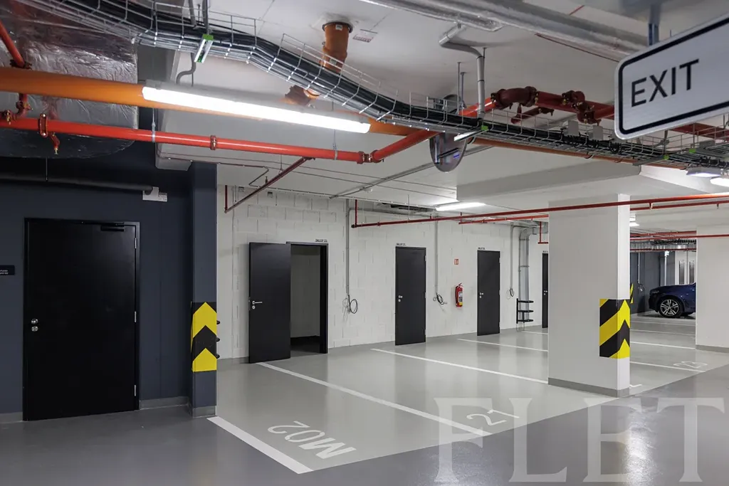 Součástí pronájmu jsou dvě parkovací místa v garáži – jedno pro auto, druhé pro motorku a také sklep, který zajišťuje další úložné prostory.