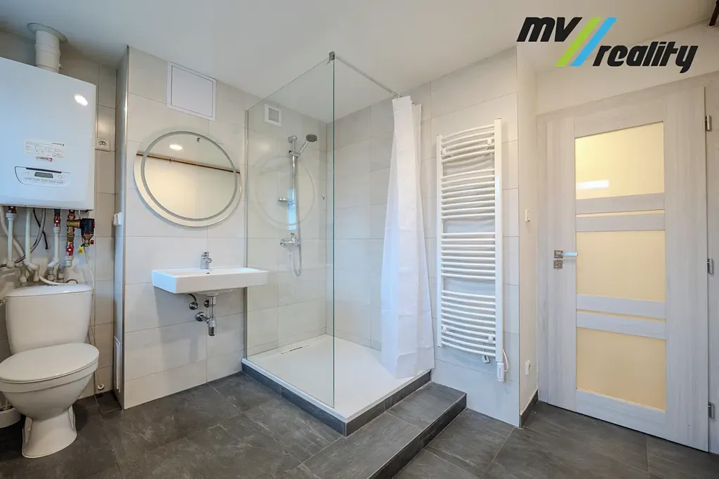 Byt prošel kompletní rekonstrukcí: koupelna, kuchyň, podlahy, omítky, dveře, nový kotel, rozvody vody a elektroinstalace.