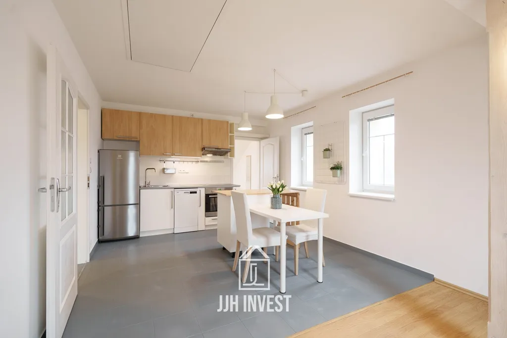 Dispozice je řešena velmi prakticky. Hlavní obytnou část tvoří obývací pokoj s kuchyňským koutem. Dále je zde samostatná ložnice a prostorná komora, kterou lze plnohodnotně využít jako pracovnu nebo menší pokoj. Koupelna s WC a vanou. Výhodou je také veliký úložný prostor v podkroví. Byt je díky své orientaci světlý a působí vzdušně.