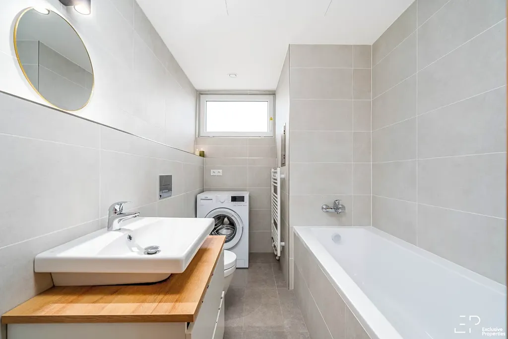 Byt je nově zařízený a připravený rovnou k nastěhování. V obývací části najdete sedací soupravu, TV stolek, jídelní stůl a plně vybavenou kuchyňskou linku se spotřebiči (varná deska, lednice, myčka, trouba, digestoř).