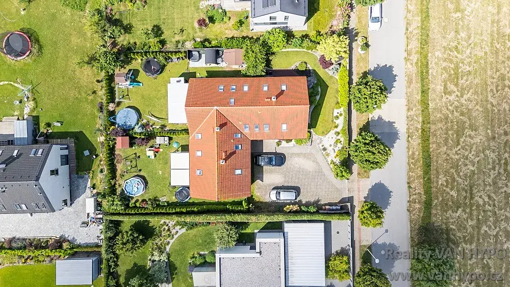 Světlý, nadstandardně řešený mezonetový byt 4 + kk s udržovanou předzahrádkou (150 m2), zahradním jezírkem, parkovacím stáním a praktickou dispozicí v klidné zástavbě rodinných domů.