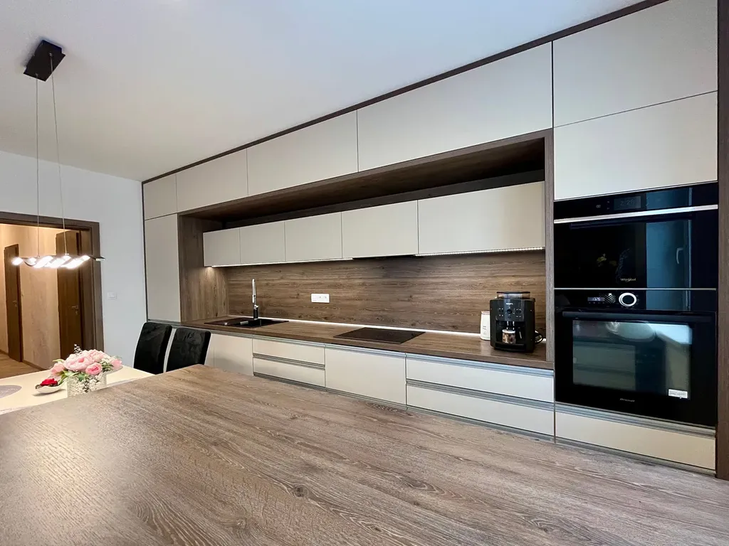 Nabízíme k pronájmu nadstandardně vybavený byt 3+kk s garážovým stáním ve Slovenské ulici v lokalitě Horní Kosov v Jihlavě. Jedná se o výjimečný byt, zařízený kompletně na zakázku, bytová jednotka má plochu 76,4 m2 + lodžie 6 m2, s orientací obytných místností k jihu do klidového prostoru. Garážové stání se nachází v hromadných garážích v suterénu domu, dům je s výtahem, bezbariérový. Kromě kompletního zařízení, které je součástí pronájmu, je byt vybaven kuchyňskou linkou se spotřebiči (varná deska, 2 trouby, digestoř, lednice s mrazákem, myčka, dále pračka a sušička, televize). K pronajímanému bytu není k dispozici sklep. Nemovitost se nachází v klidné lokalitě, v blízkostí MHD a s dobrým příjezdem autem, včetně možnosti veřejného parkování. Výhodou je okrajová část města a blízkost přírody, 1,5 km od řeky Jihlavy a přírodní památky Zaječí skok, v okolí cyklostezky i pěší trasy.