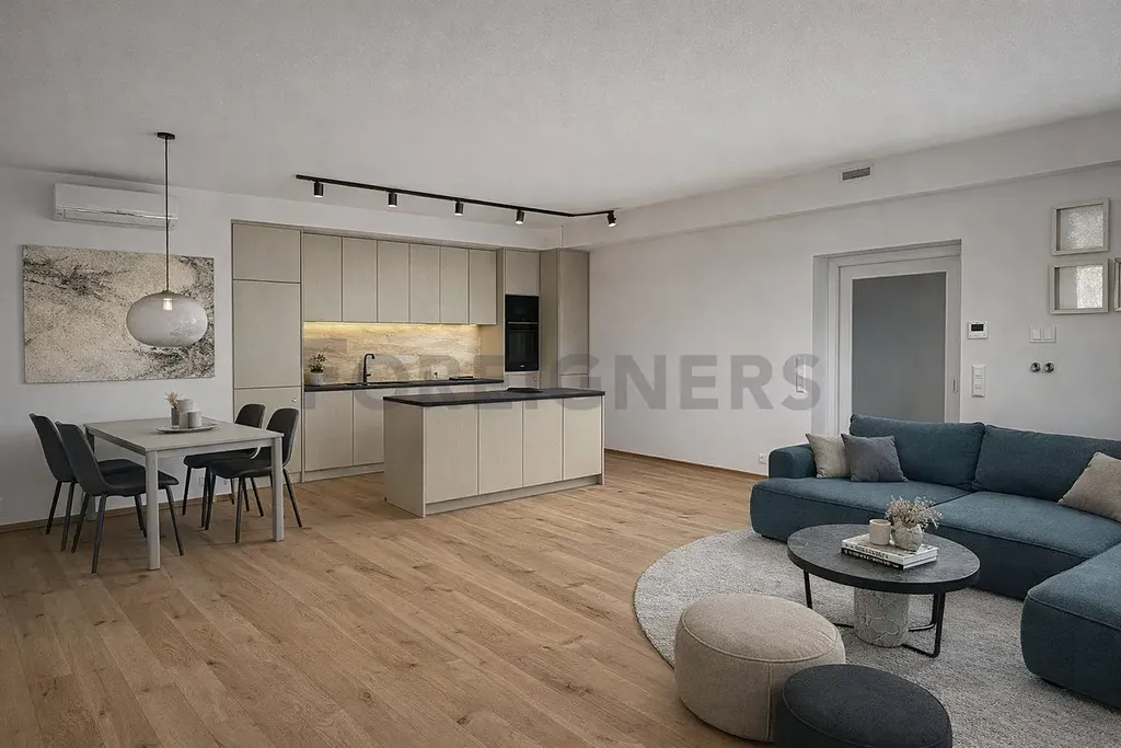 Interiér je navržen architektem s důrazem na kvalitu, nadčasovost a komfort.Byt je aktuálně dokončován. Vizualizace slouží jako představa finální podoby interiéru.