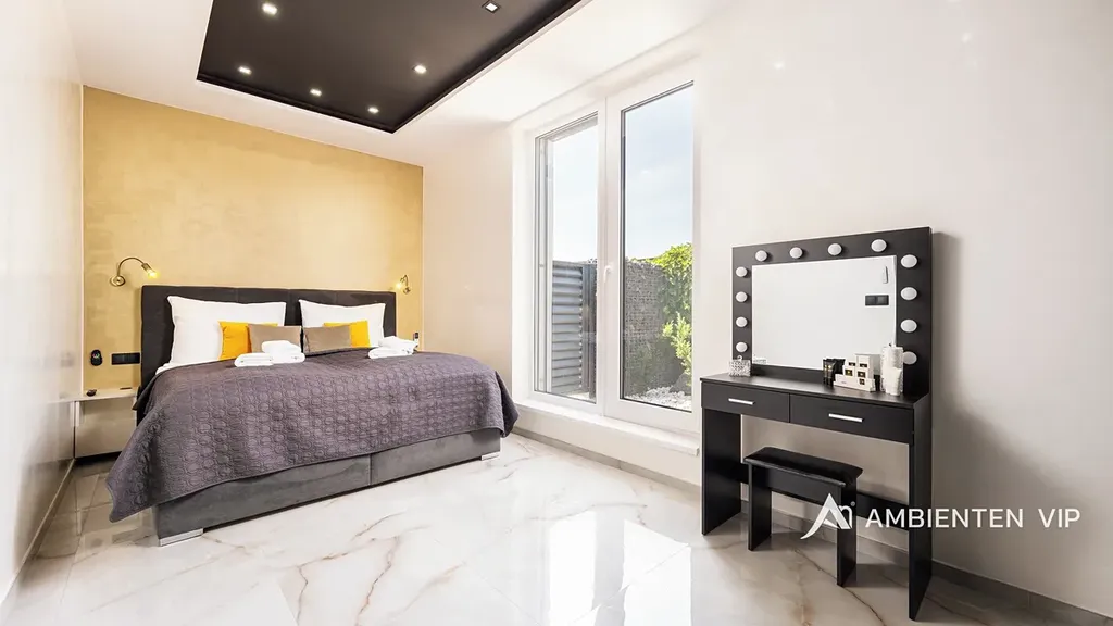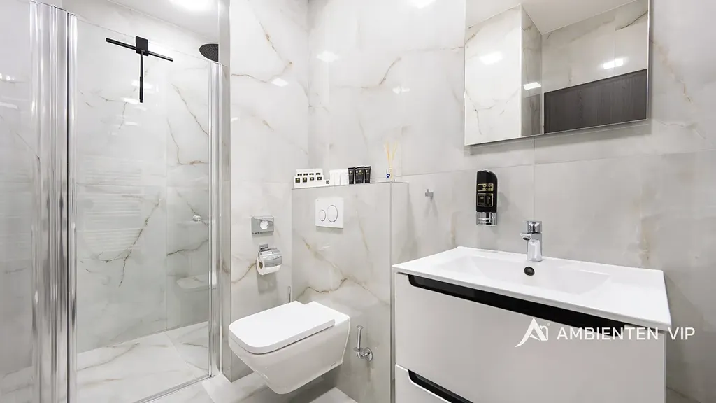 Každý apartmán disponuje plně vybavenou kuchyní, koupelnou, klimatizací a zatemňovacími venkovními žaluziemi. Všechny místnosti mají samostatný termostat pro regulaci teploty, vytápění je zajištěno teplovodním podlahovým topením a ohřev vody zajišťují elektrické bojlery (každá jednotka má vlastní se zásobníkem 125 L). Každý byt má své podružné měřidlo elektřiny i vody, nemovitost má jednu hlavní přípojku elektřiny a vody.